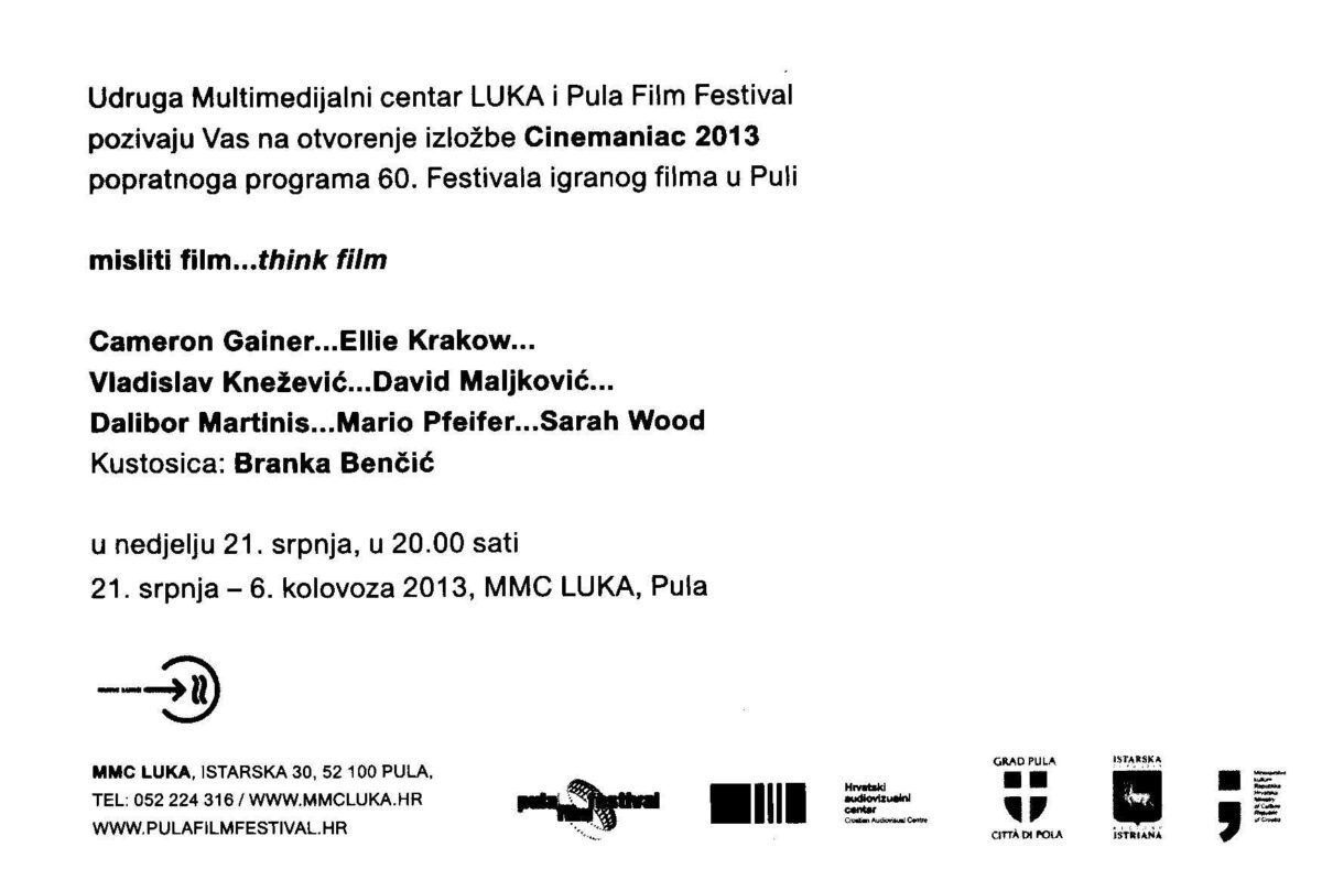 Kartolina – Misliti filmTThink film 21.07.-06.08.2013. Izložba Cinemaniac 2013., 60.Festival igranog filma u Puli