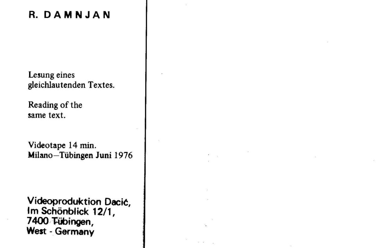 Kartolina – R. Damnjan. Lesung eines gleichlautende Textes. Reading of the same text. 1976.