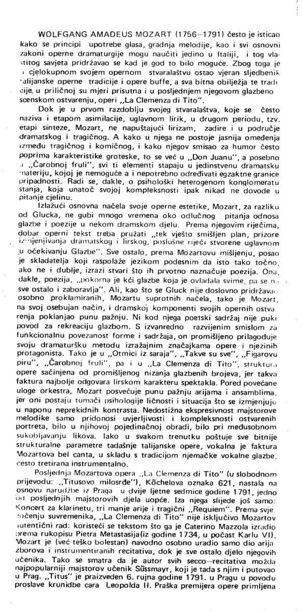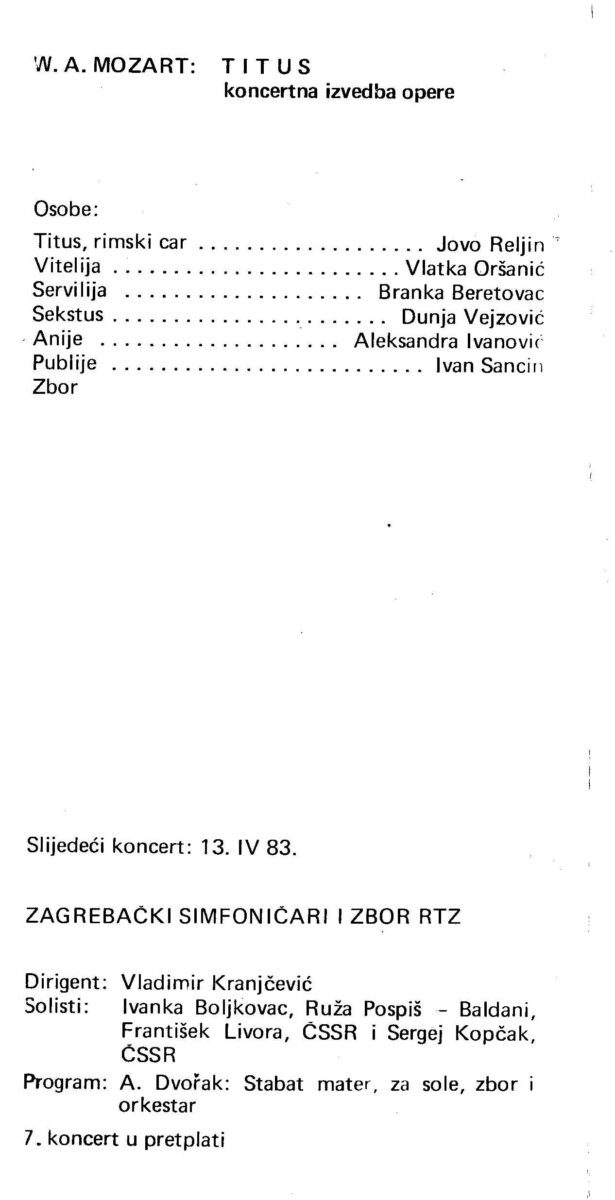 Kartolina – W.A. Mozart – Titus. Zagrebački simfoničari i zbor RTZ. Najava za koncert 23.03.1983. Koncertna dvorana Vatroslav Lisinski, Zagreb