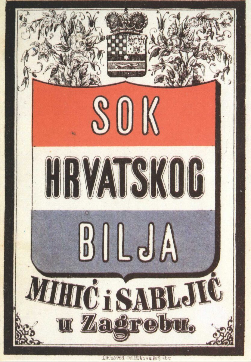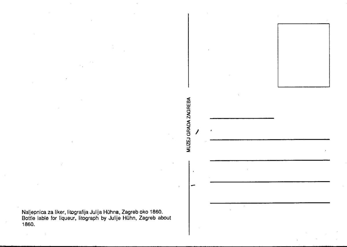 Kartolina – Zagreb na naljepnici liker, litografija Julija Huhna Zagreb oko 1860.