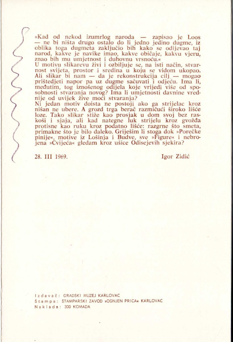 Strijelac -Marin Tartagli, Karlovac 11.-28.04.1969. Galerija Karas.