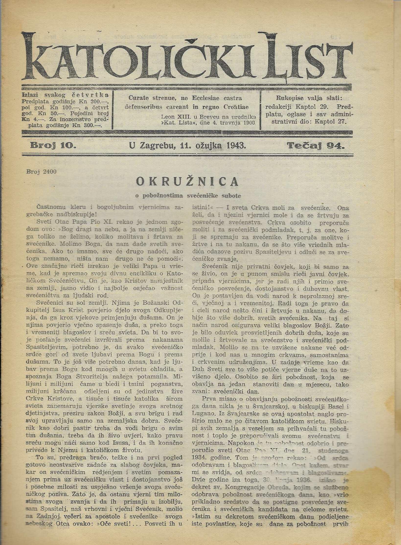 | Izdavač i godina: | Nadbiskupija zagrebačka, 1938. |