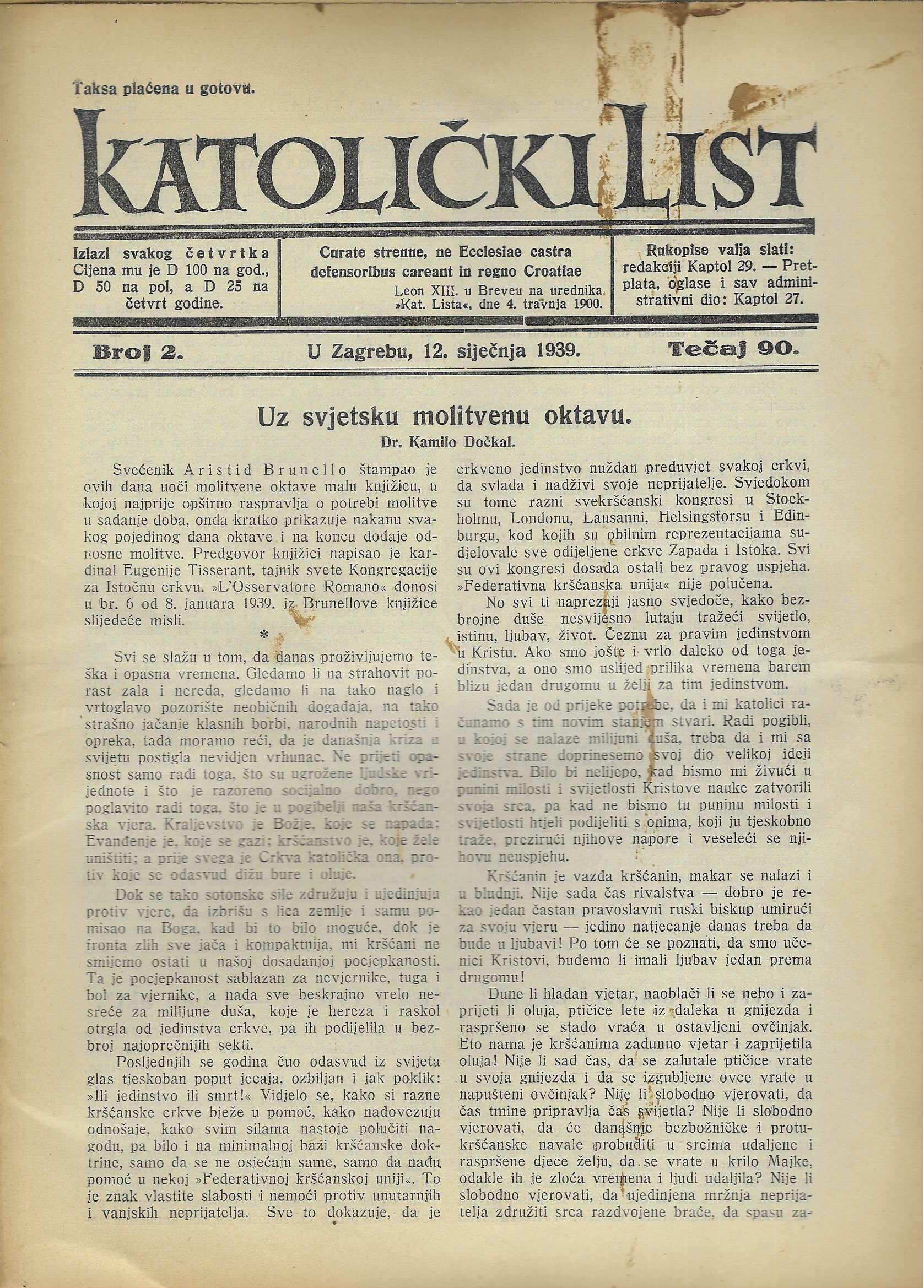 | Izdavač i godina: | Nadbiskupija zagrebačka, 1939. |