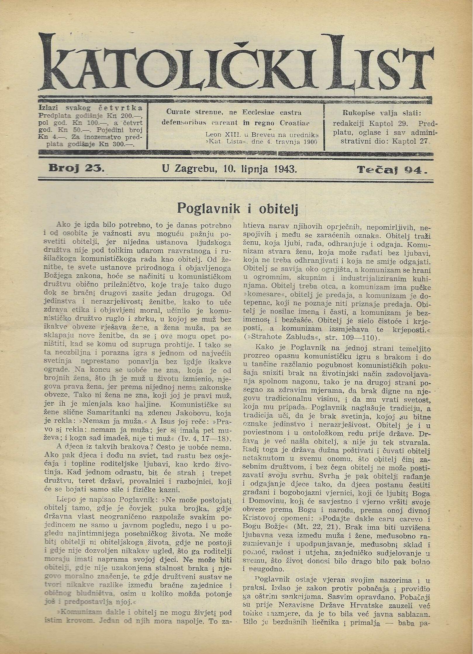 | Izdavač i godina: | Nadbiskupija zagrebačka, 1943. |