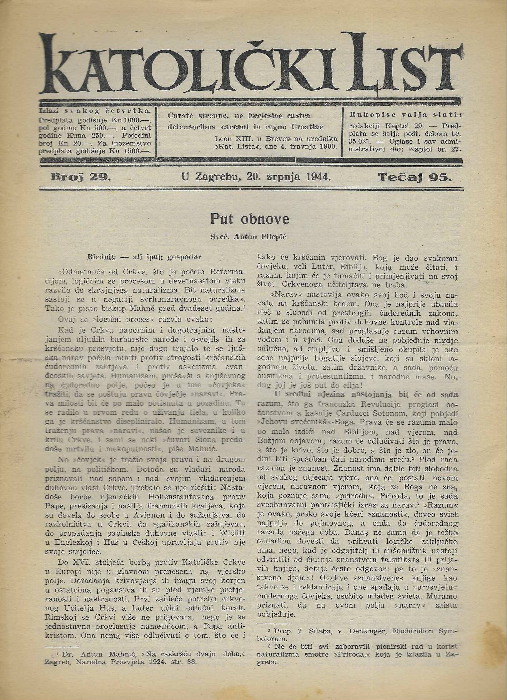 | Izdavač i godina: | Nadbiskupija zagrebačka, 1944. |