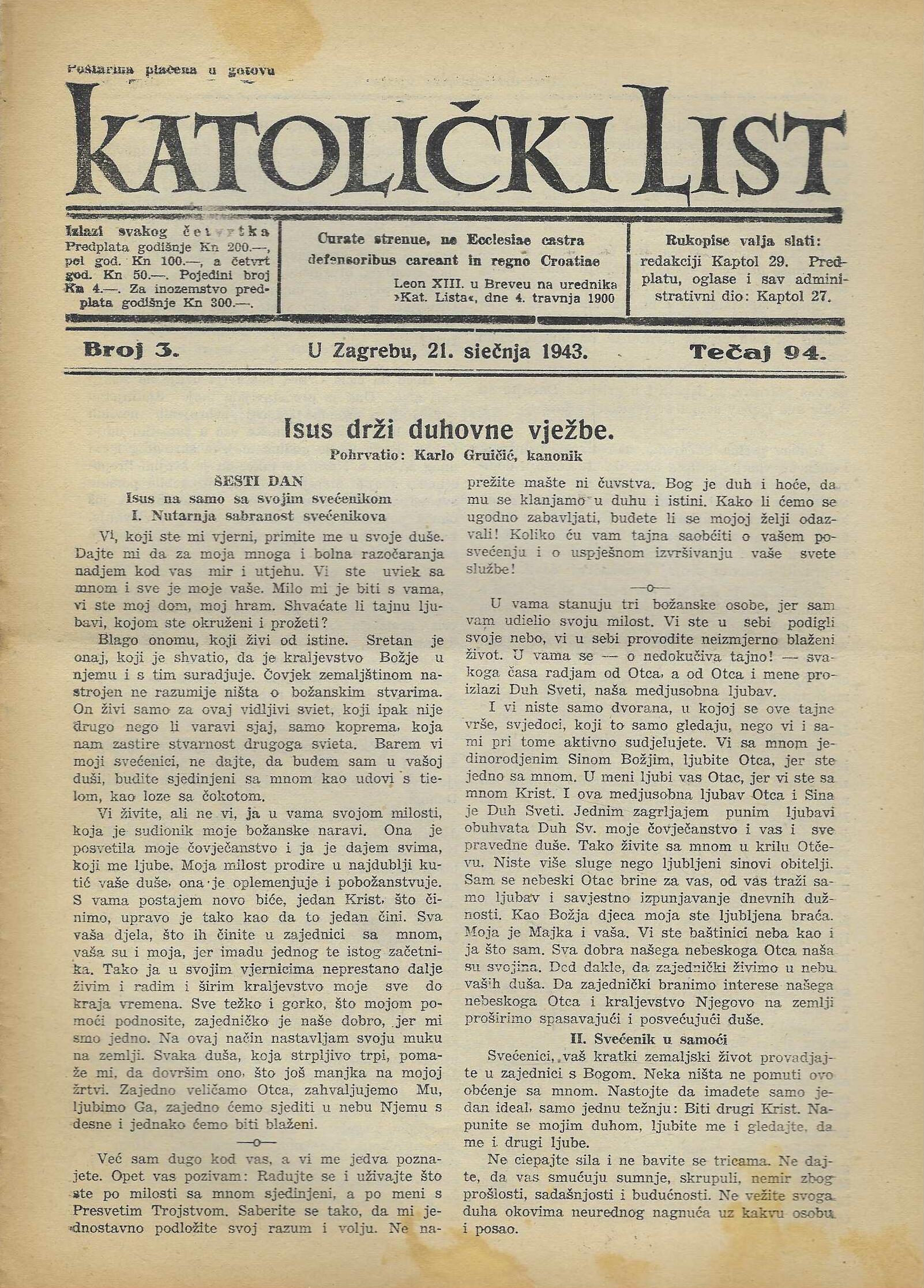 | Izdavač i godina: | Nadbiskupija zagrebačka, 1943. |