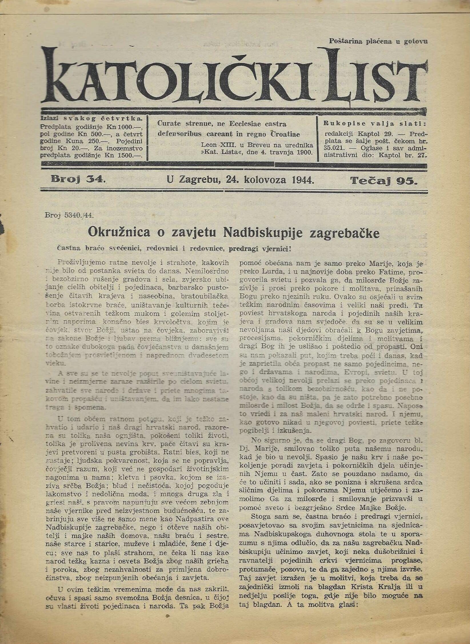 | Izdavač i godina: | Nadbiskupija zagrebačka, 1944. |