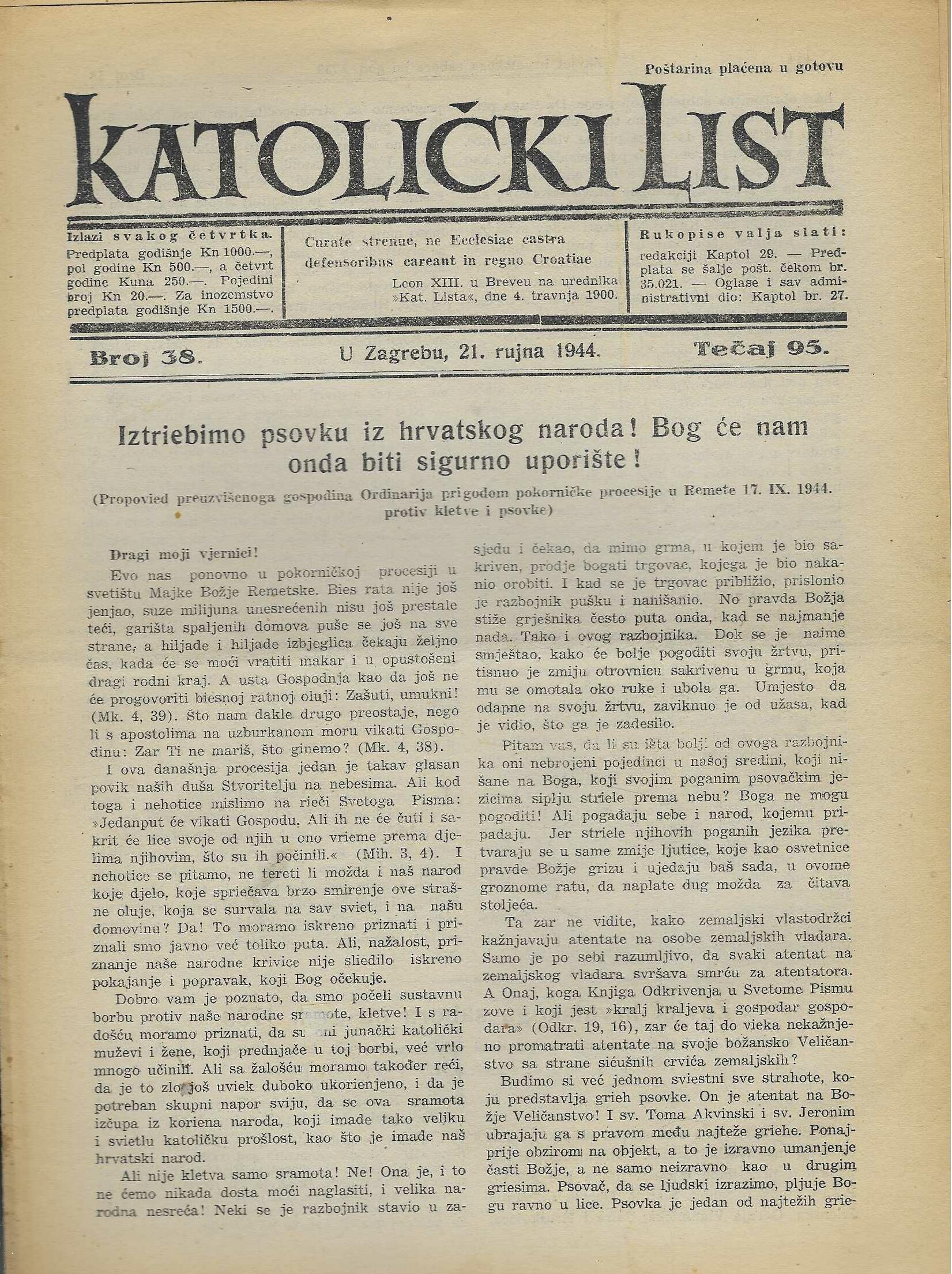 | Izdavač i godina: | Nadbiskupija zagrebačka, 1944. |