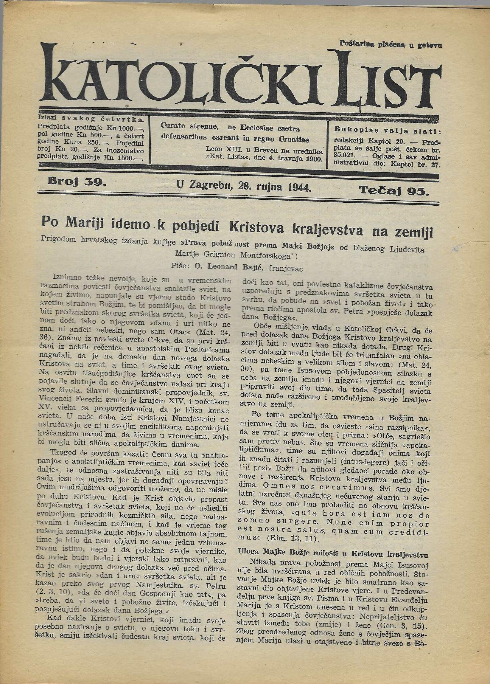 | Izdavač i godina: | Nadbiskupija zagrebačka, 1944. |
