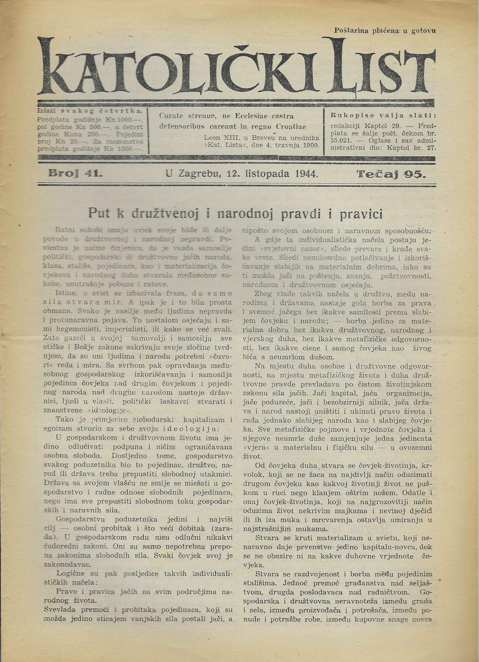 | Izdavač i godina: | Nadbiskupija zagrebačka, 1944. |