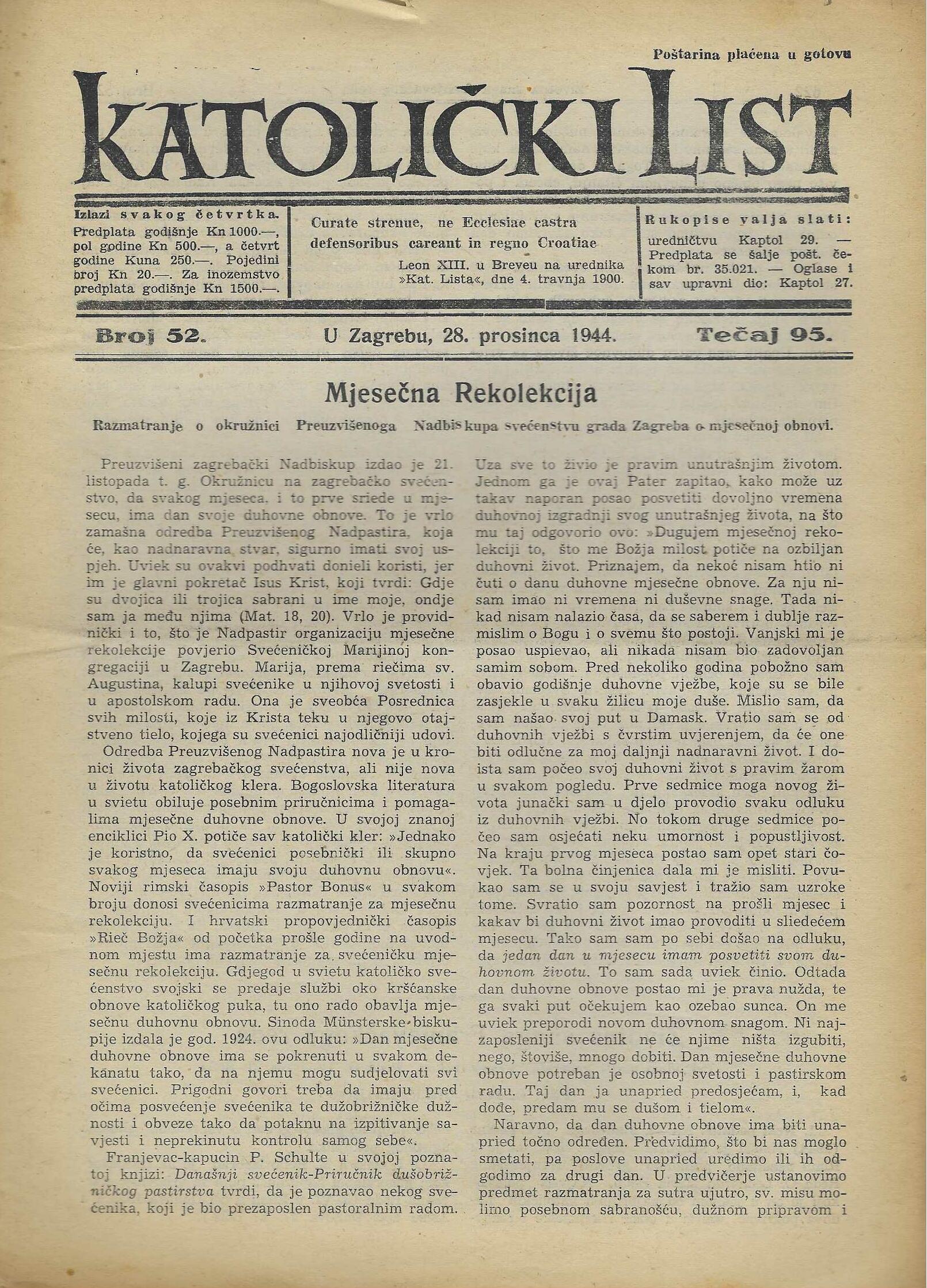 | Izdavač i godina: | Nadbiskupija zagrebačka, 1944. |