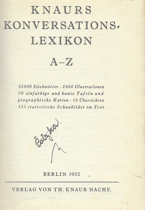 | Izdavač i godina: | VERLAG VON TH. KNAUR NACHF, 1932. |