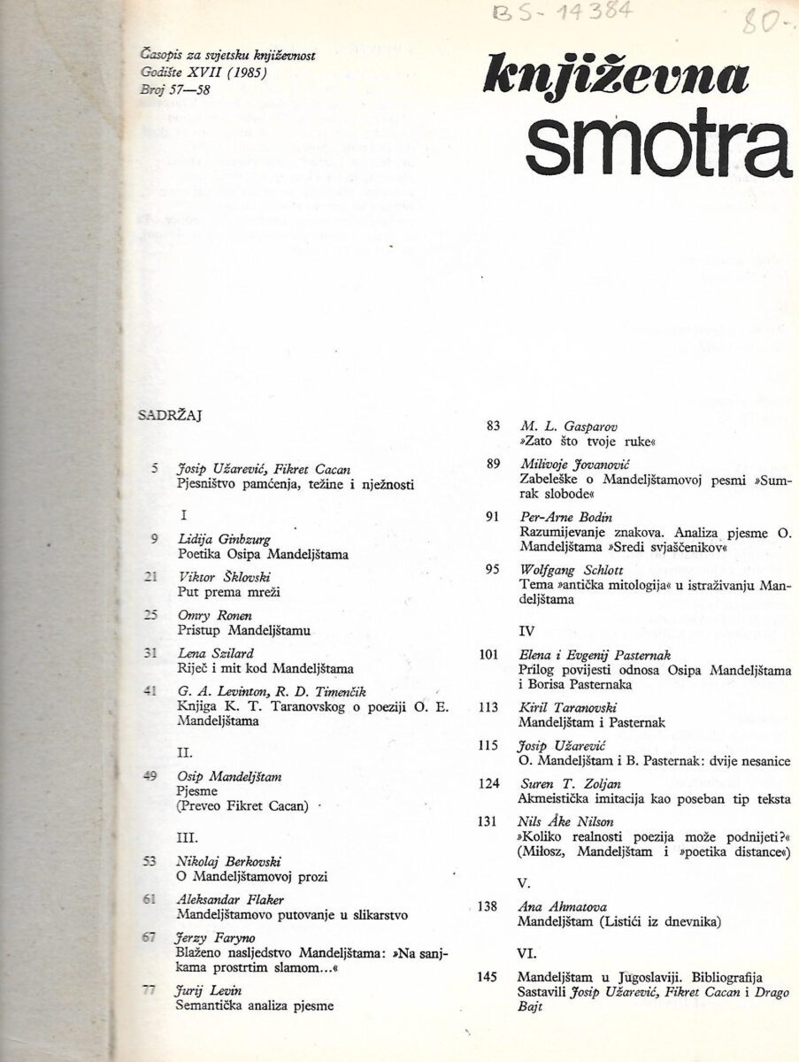 Književna smotra – Godište XVII (1985) broj 57-58