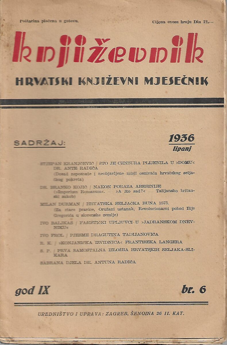 Izdavač i godina: zagreb, 1936.