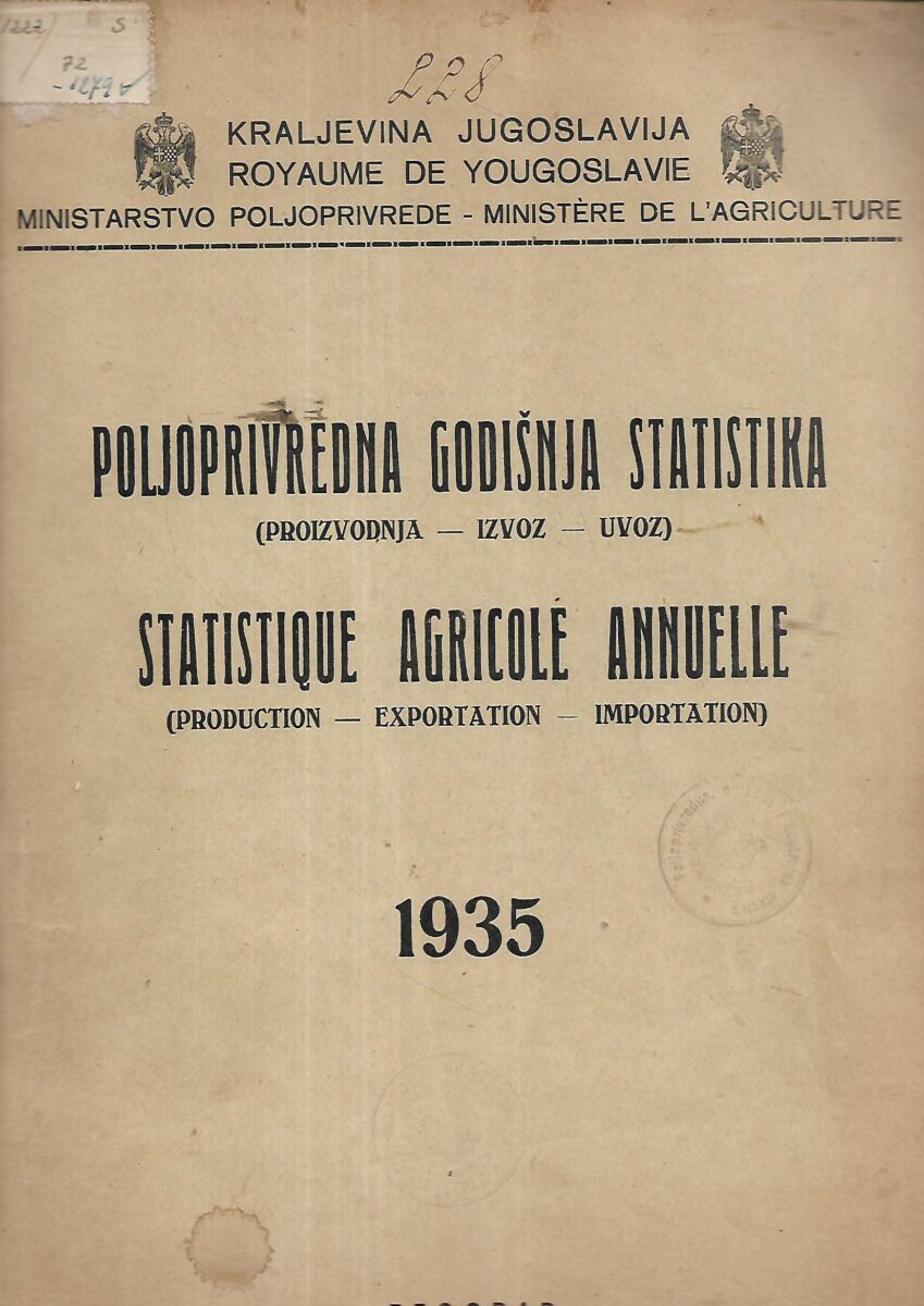 Kraljevina Jugoslavija – poljoprivredna godišnja statistika 1935