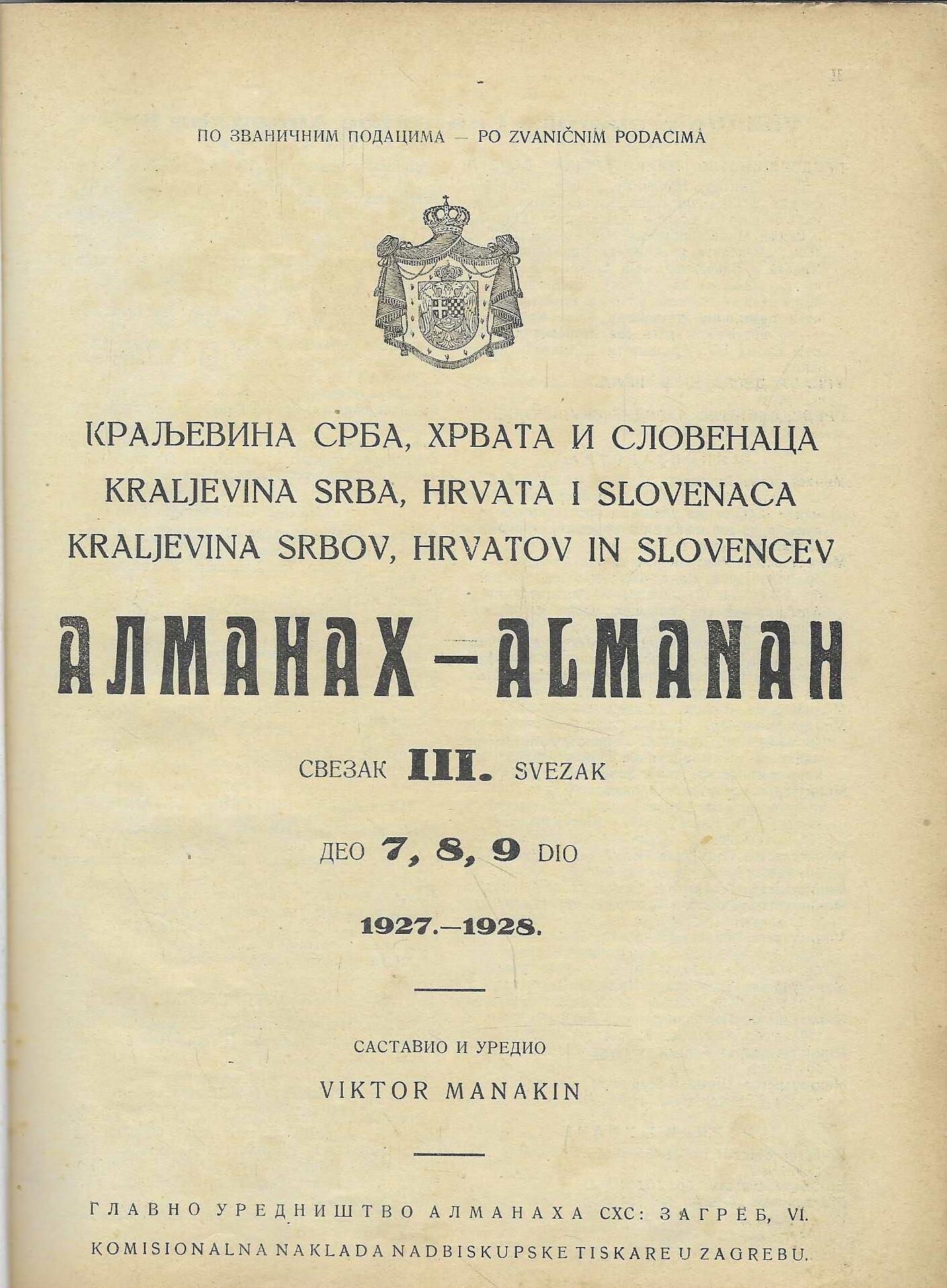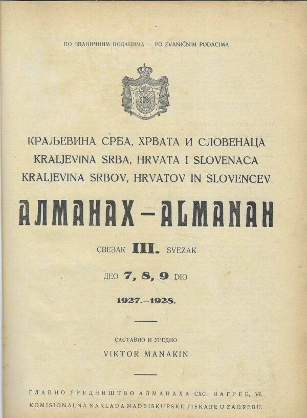 | Izdavač i godina: | Komisionalna naknada nadbiskupske tiskare u Zagrebu |