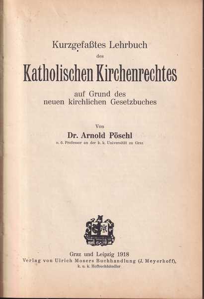 Kurzgefassets Lehrbuch des Katolischen Kirchenrechtes auf Grund des neuen kirchlichen Gesetzbuches von Dr. Arnold Poschl o.o. Professor an der k.k. Universitat zu Graz