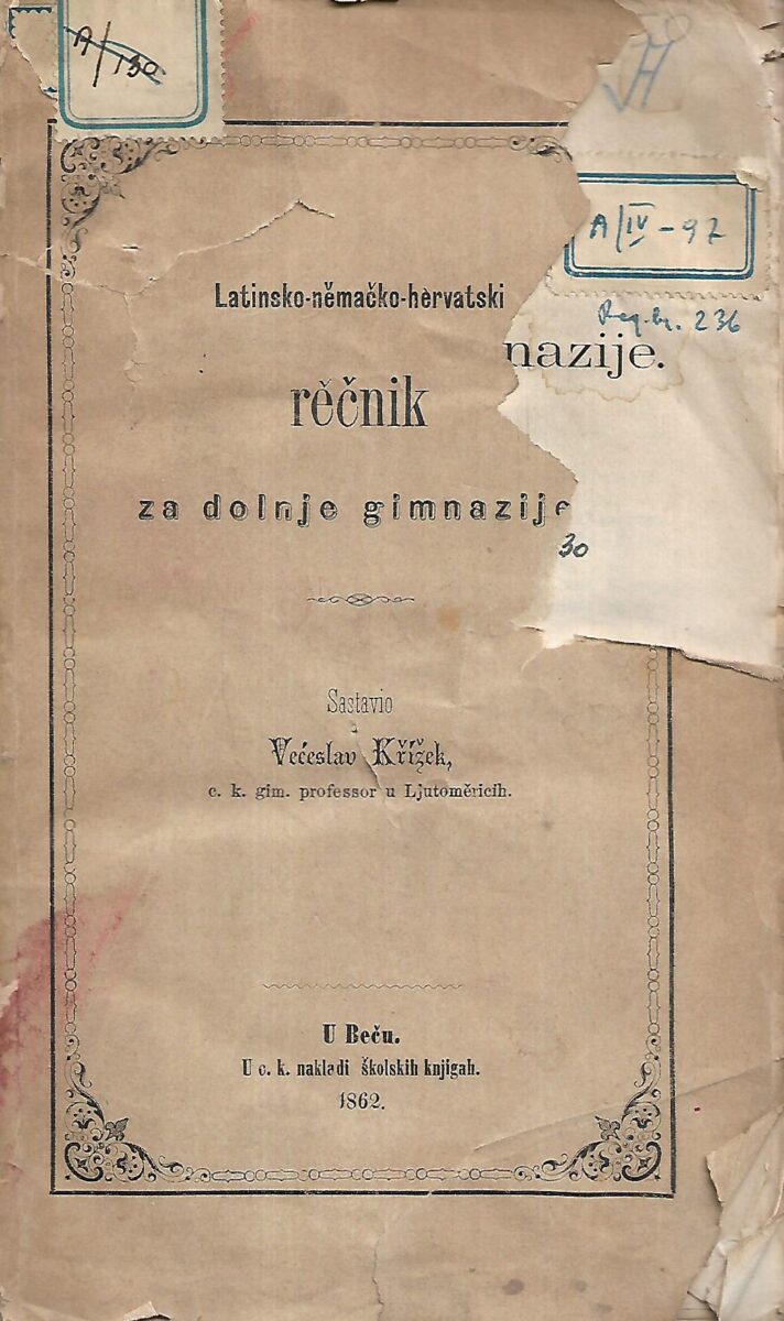 Izdavač i godina: Naklada školskih knjigah, Beč, 1862.