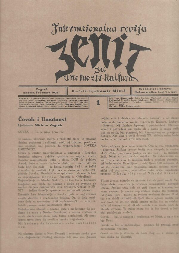 Zenit, broj 1– reprint. Bibliofilski reprint. Tiskano u 320 numeriranih primjeraka.