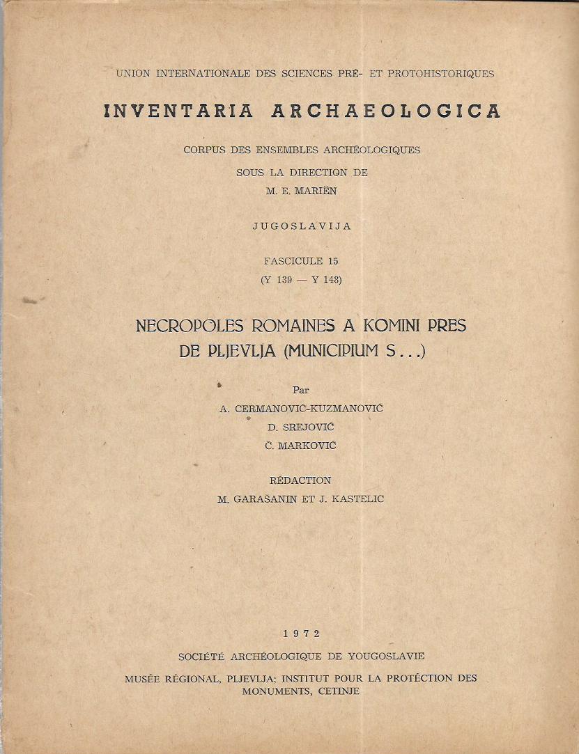 Izdavač i godina: Societe Archeologique de Yougoslavie, 1972.