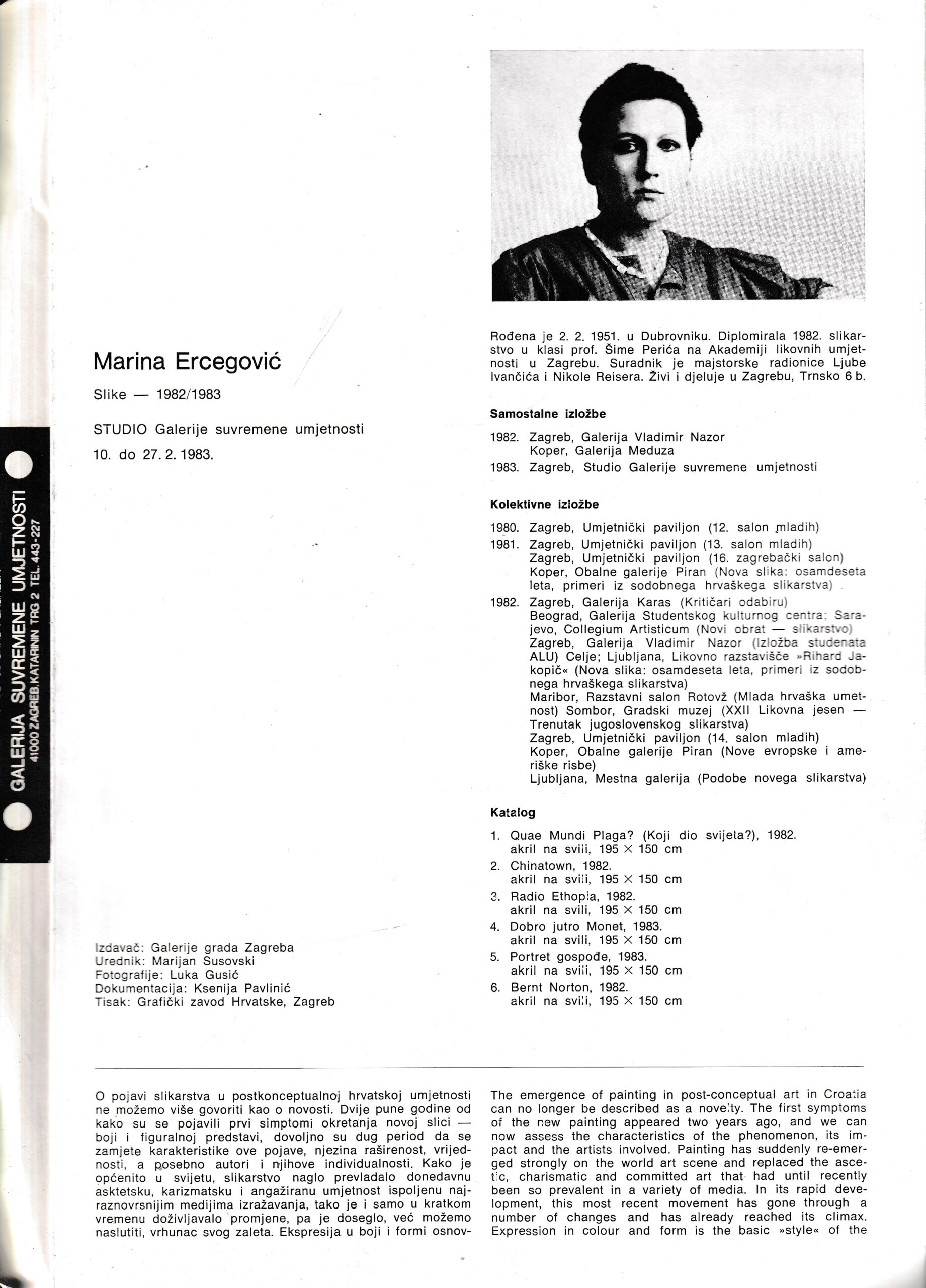 | Izdavač i godina | Galerije grada Zagreba, 1983. |