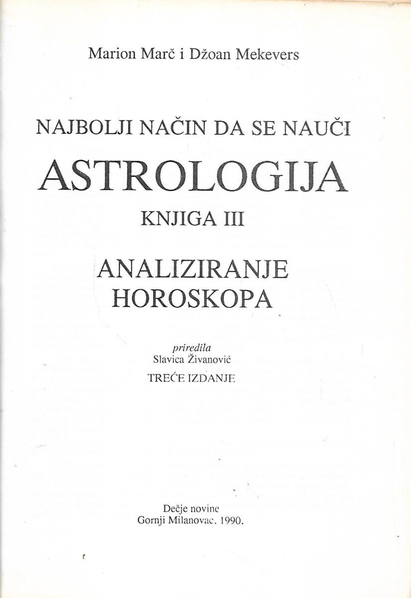 Marion D.March i Joan McEvers: Najbolji način da se nauči astrologija Knjiga III.
