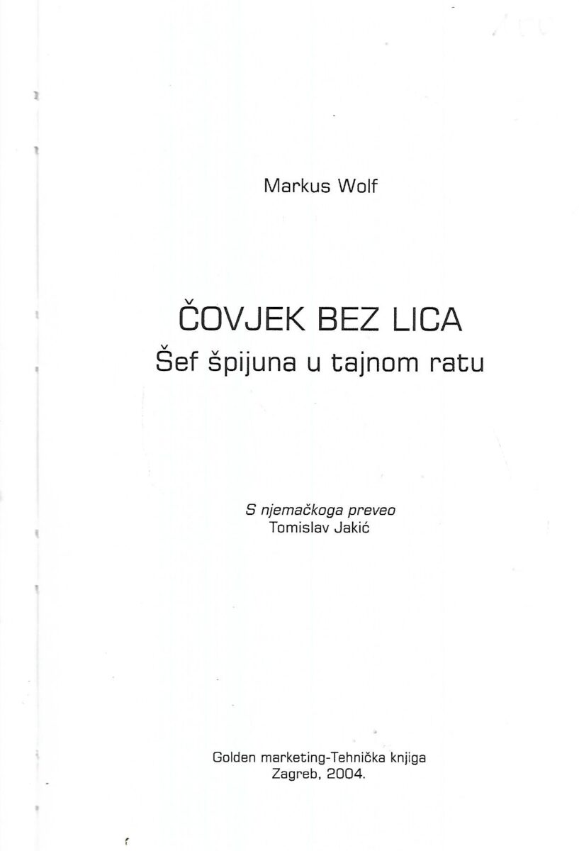 Šef špijuna u tajnom ratu Knjiga sjećanja M. Wolfa, šefa istočnonjemačkih obavještajaca. Posebnu vrijednost ima dio koji govori o padu Berlinskog zida, urušavanju socijalističkog sustava i ujedinjenju Njemačke 1989. godine.