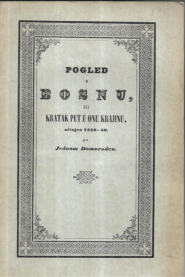 Pogled u Bosnu, “biser hrvatske proze”, kako kaže Tade Smičiklas, bibloigrafska je rijetkost. Putujući 1839. u Bosnu (od Karlovca, Siska i Kostajnice, preko Beograda, pješice i na konju, do Sarajeva, Tvornika i Zvornika) Mažuranić je napisao djelo koje se čita i kao pustolovina i kao realistički prikaz doživljenoga i viđenoga.