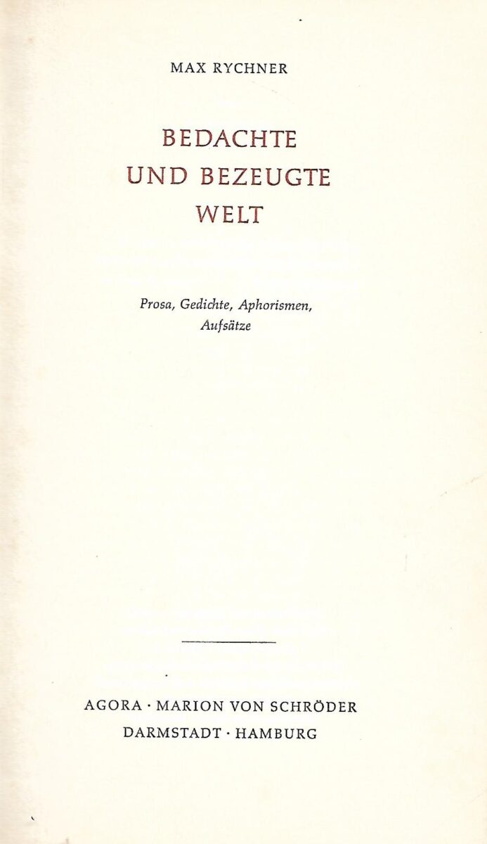 Max Rychner: Bedachte und bezeugte Welt
