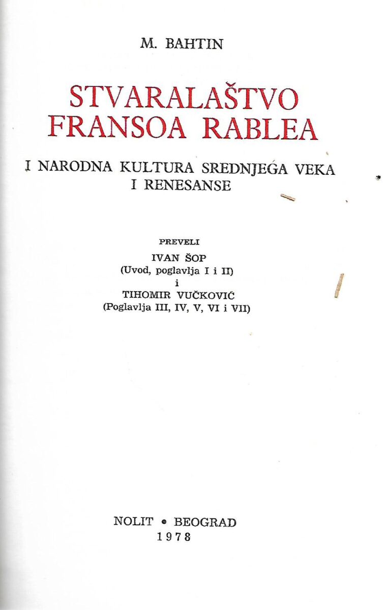 Izdavač i godina: NOLIT, Beograd, 1985.