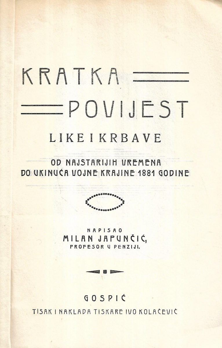 Milan Japunčić: Kratka povijest Like i Krbave / Od najstarijih vremena do ukinuća vojne krajine 1881.