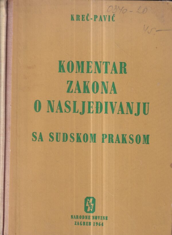 Milan Kreč i Đuro Pavić: Komentar zakona o nasljeđivanju