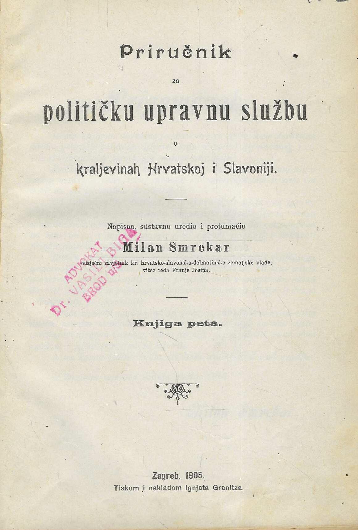 | Izdavač i godina: | Tisak i naklada Ignjata Granitza, Zagreb 1905. |