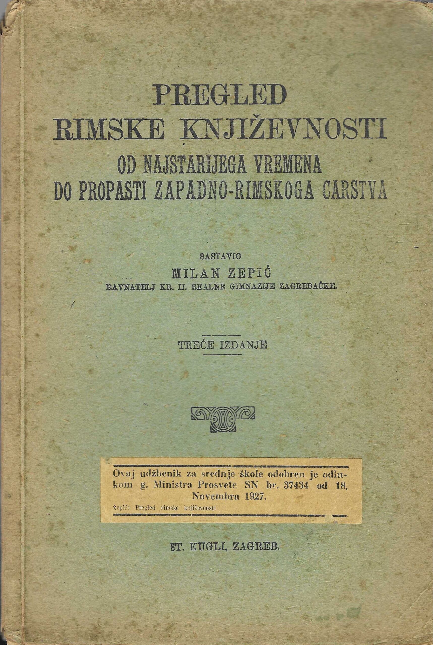 | Izdavač i godina: | Naklada knjižare St. Kugli, 1927. |