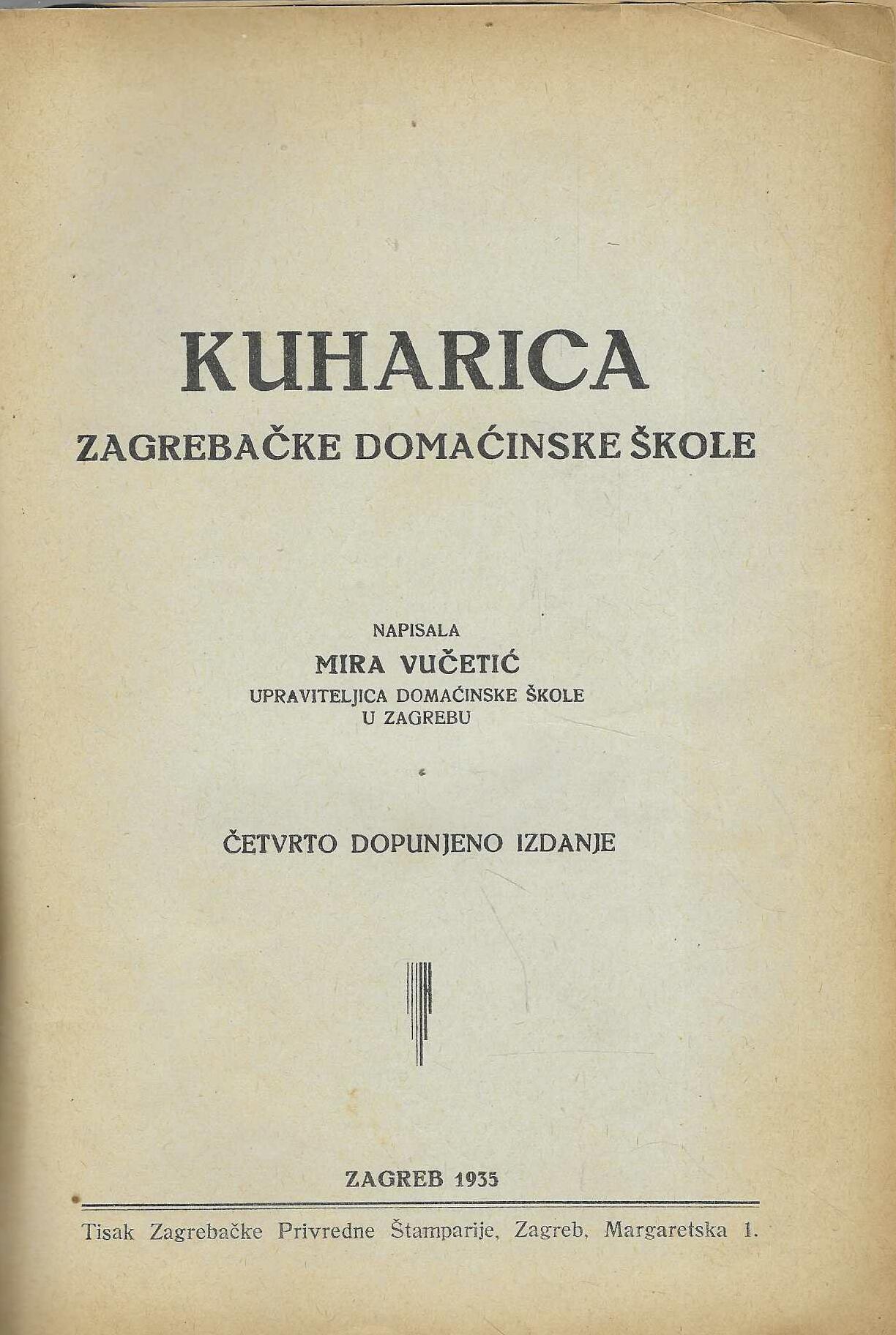 Mira Vučetić: Kuharica Zagrebačke domaćinske škole