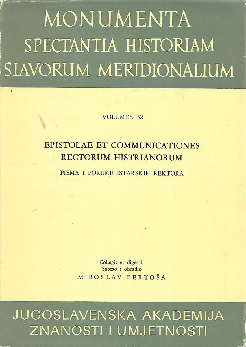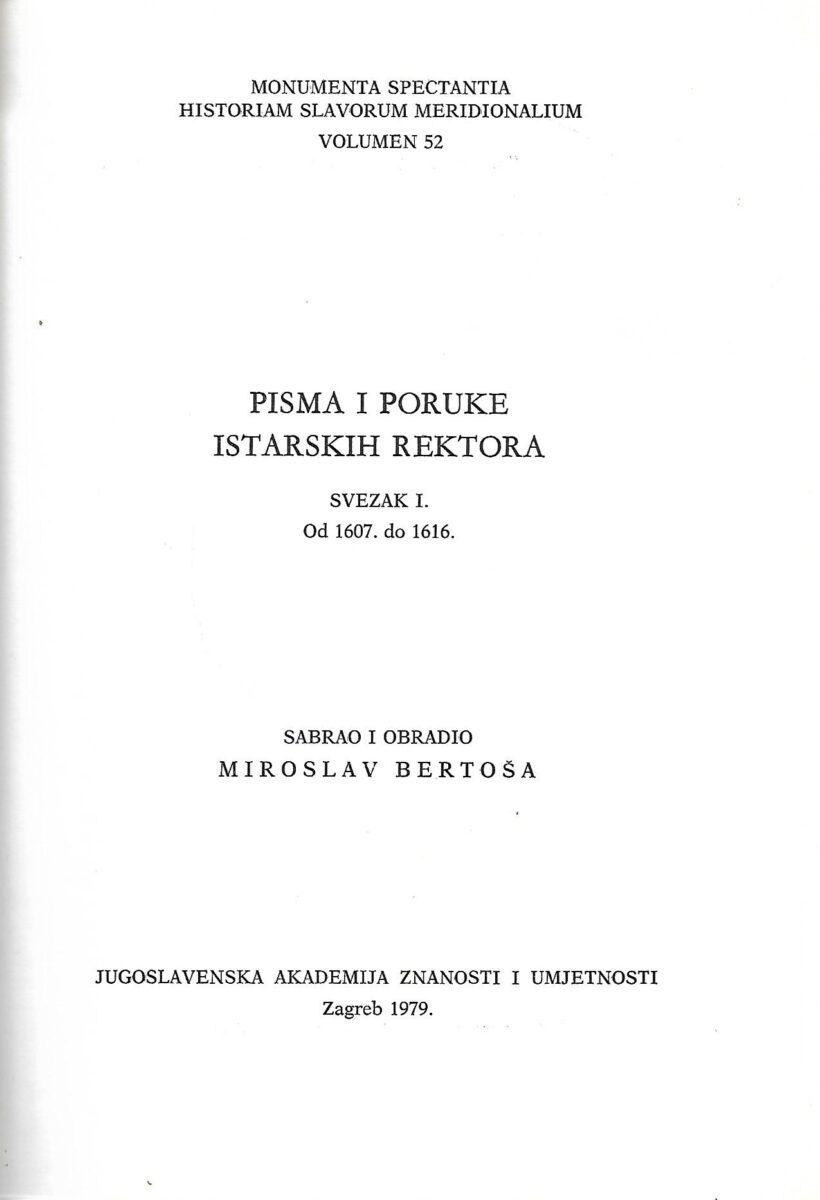 Miroslav Bertoša (ur.): Pisma i poruke istarskih rektora – Svezak I. – 1607.-1616.