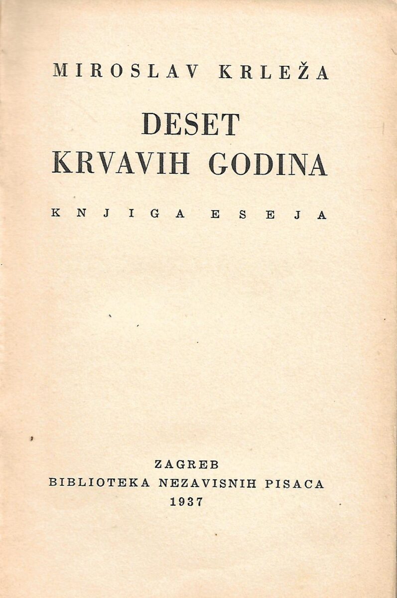 Izdavač i godina: Biblioteka Nezavisnih Pisaca, 1937.