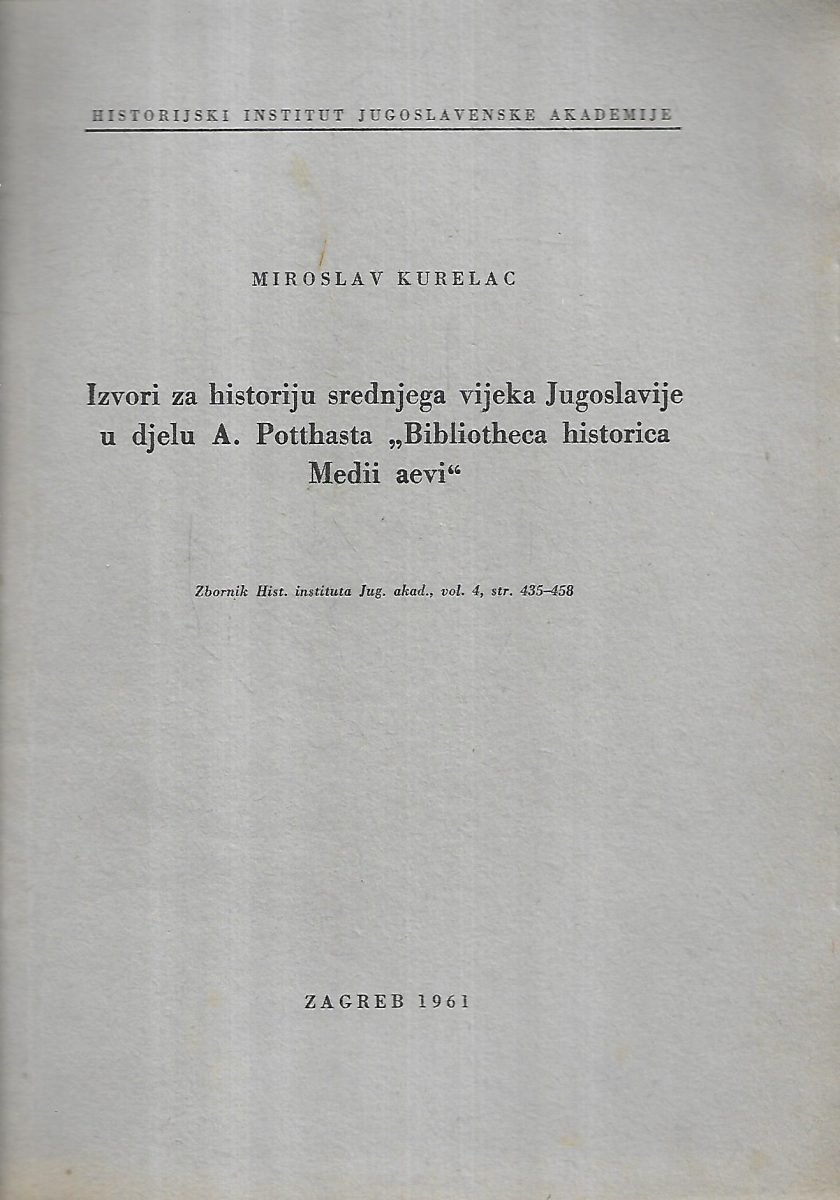 Miroslav Kurelac: Izvori za historiju srednjeg vijeka Jugoslavije u djelu A.Potthasta “Bibliotheca historica Medii aevi”
