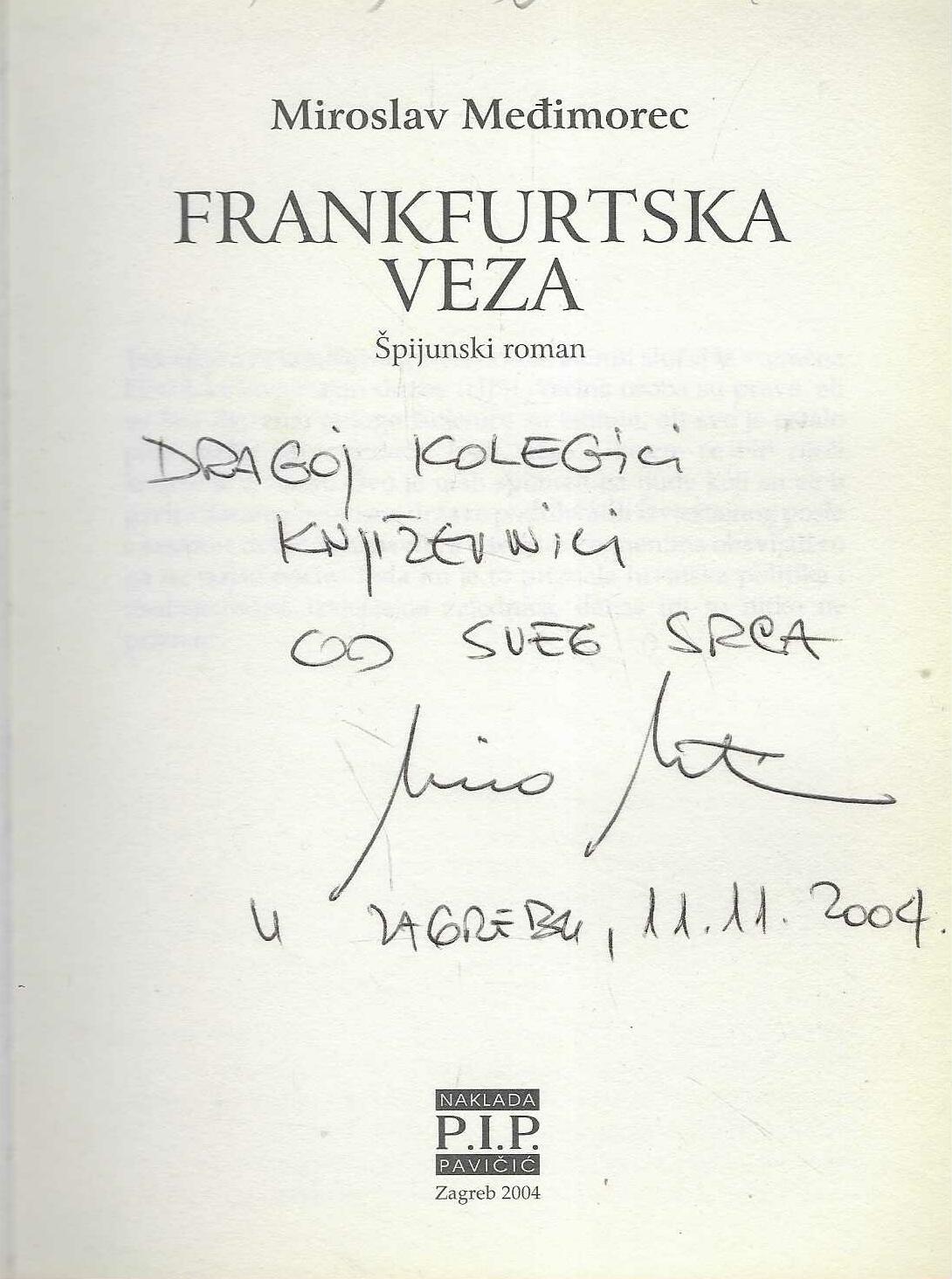 Miroslav Međimorec: Frankfurtska veza (s potpisom autora)