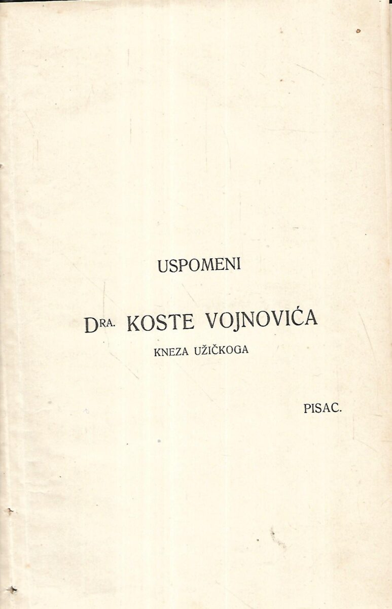 Uspomeni Dra. Koste Vojnovića kneza Užičkoga.