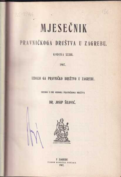 | Izdavač i godina: | Pravničko družtvo u Zagrebu, 1907. |