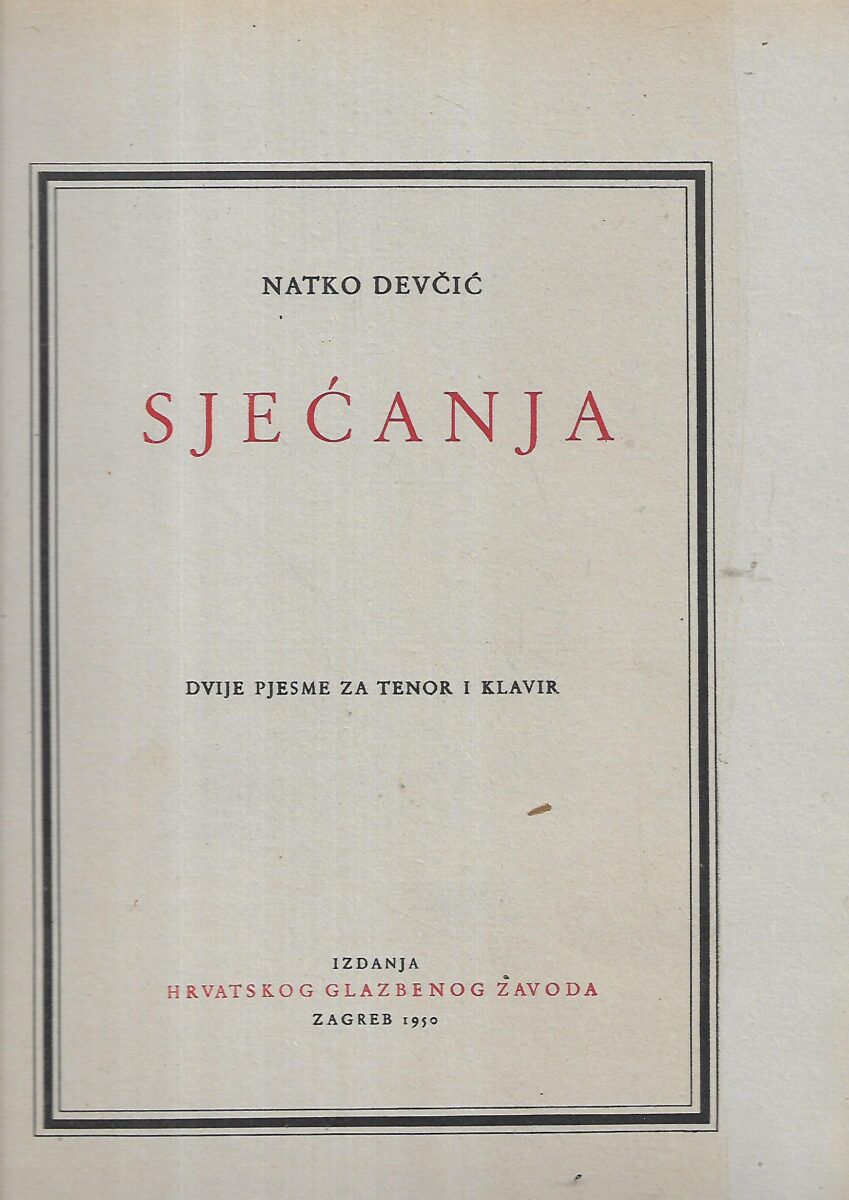 Natko Devčić: Sjećanja – dvije pjesme za tenor i klavir