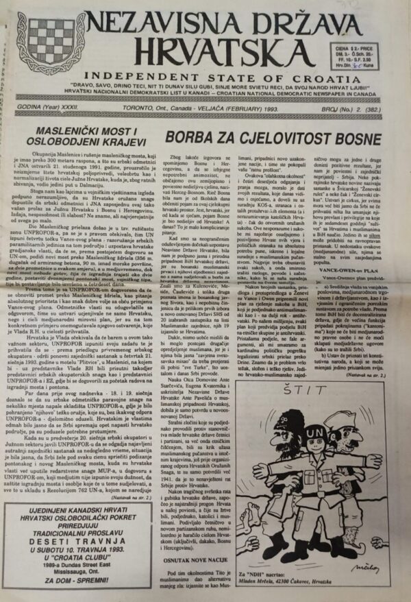 Nezavisna Država Hrvatska- Independent State of Croatia / veljača.1993. Br.2 God.31