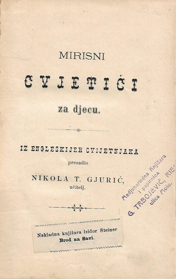 Izdavač i godina: Nakladna knjižara Izidor Steiner, Brod na Savi, 1898.