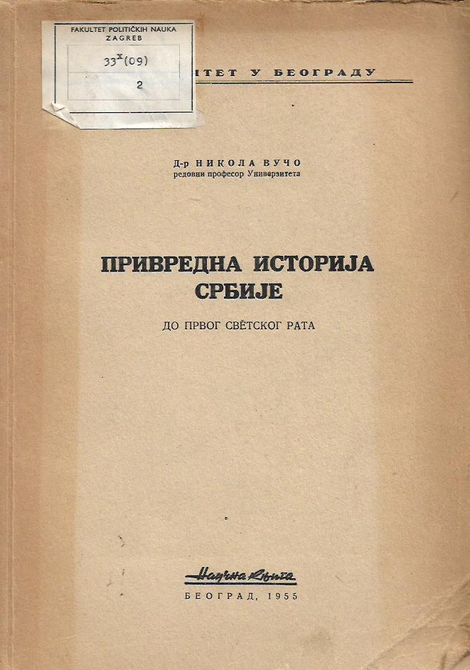 Nikola Vučo: Privredna istorija Srbije do Prvog svetskog rata (ćirilica)