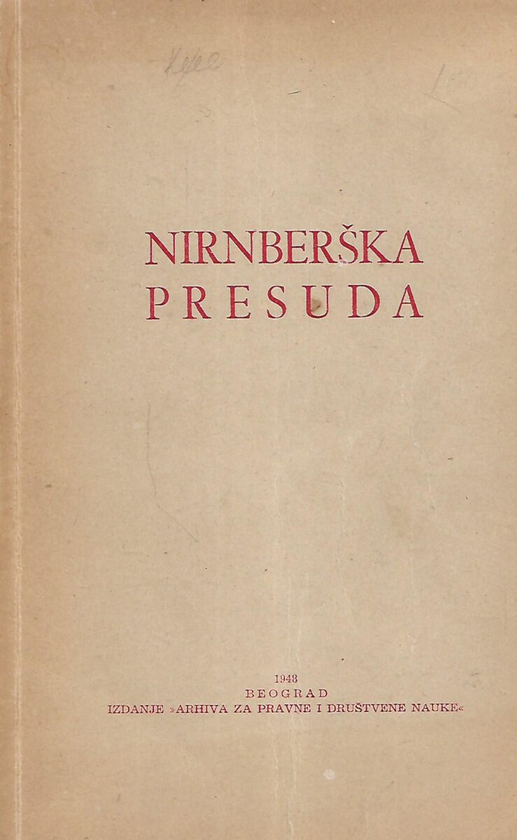Ova knjiga pruža autentičan tekst sa suđenja nacističkim ratnim zločincima u Nuernbergu. Pored presude, ova knjiga sadrži još tekstove Londonskog sporazuma iz 8. kolovoza 1945. godine, Statuta Međunarodnog vojnog suda i Zakona br. 10, koji je donio Kontrolni savjet za Njemačku 1. prosinca 1945. godine.