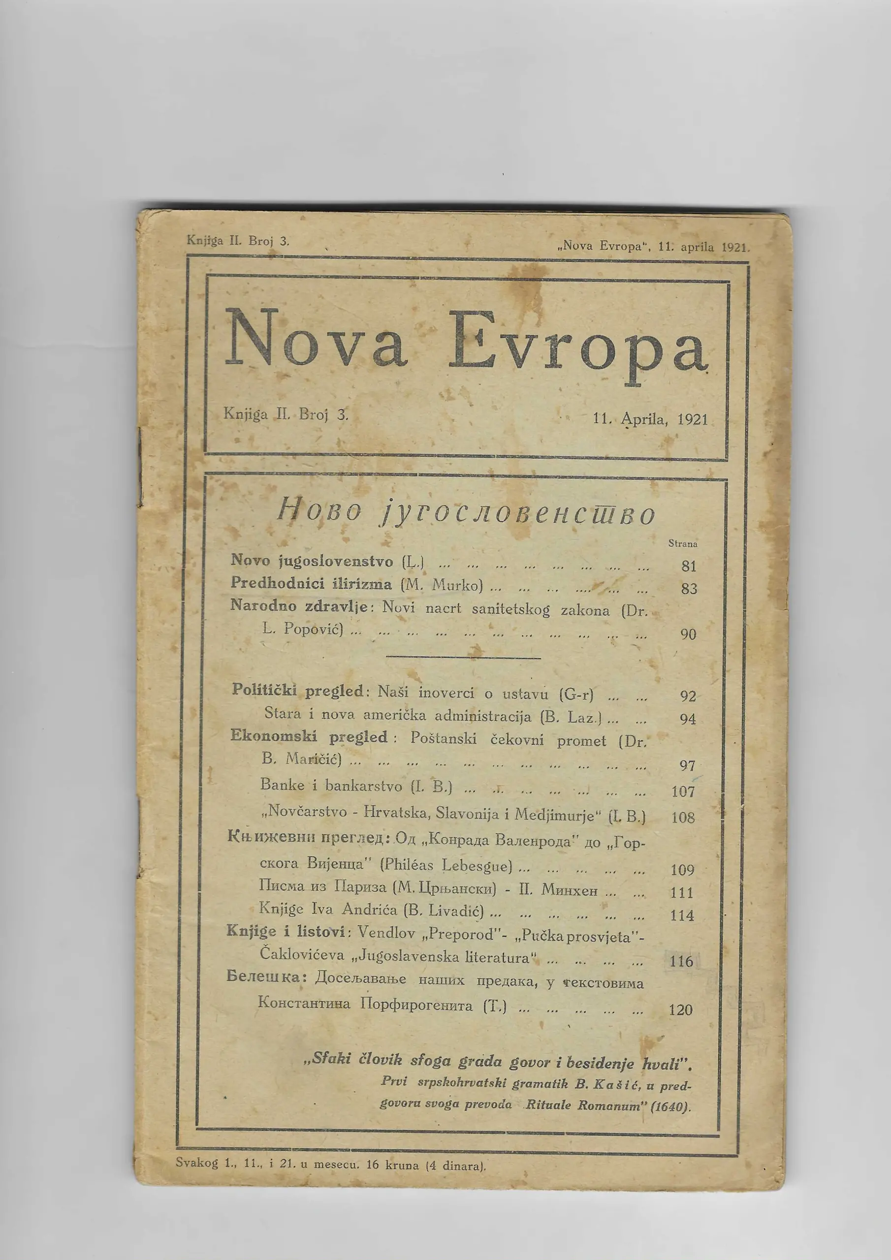 | Izdavač i godina: | Nova Evropa, 1921. |