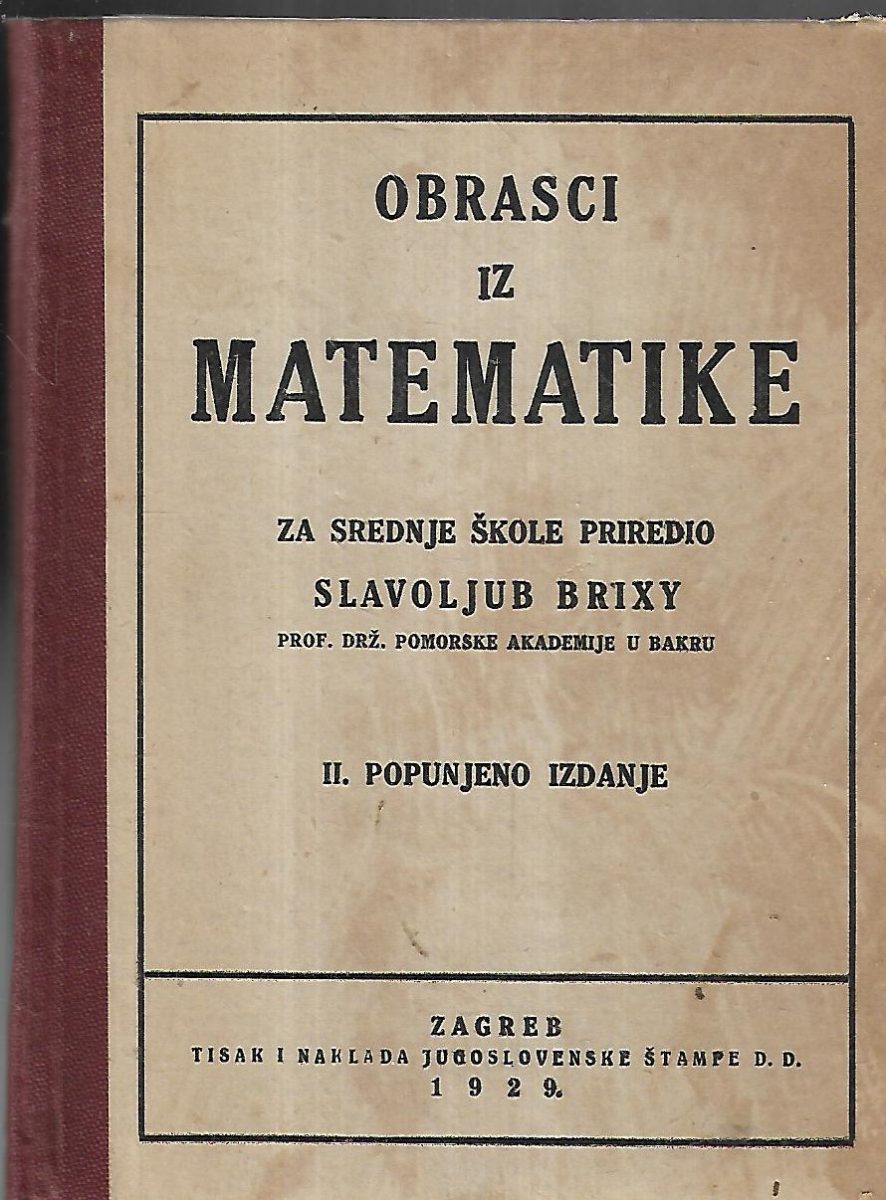 Obrasci iz matematike za srednje škole priredio Slavoljub Brixy prof. drž. pomorske akademije u Bakru, 2. popunjeno izdanje