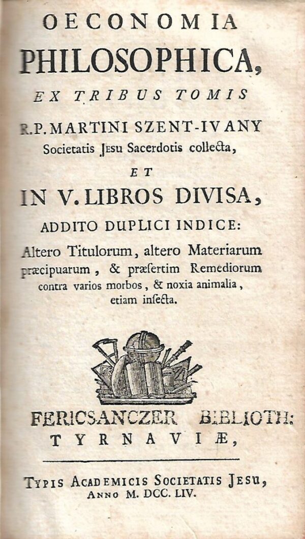 Ekonomija je filozofija, iz tri sveska R.P. Svećenik društva Martini Szent-Ivany prikupljen u knjigama; V., dodajući dvostruki indeks, sljedeće naslove, jedan osnovni materijal …