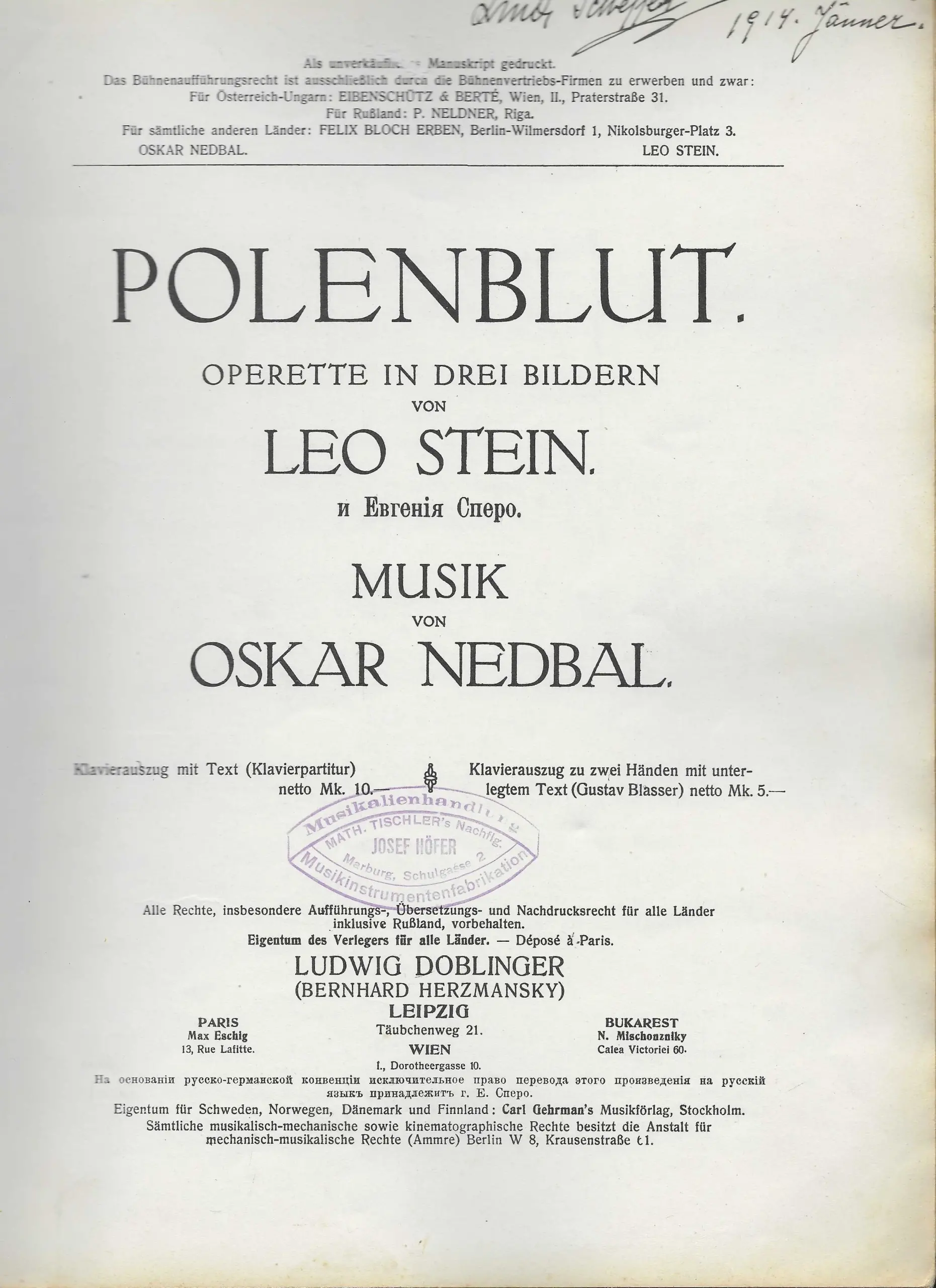 Oskar Nedbal i Leo Stein: Polenblut